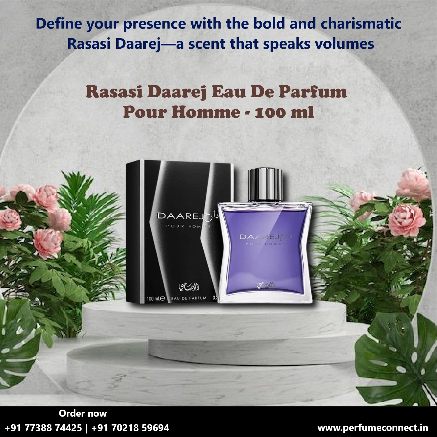 Discover the commanding presence of Rasasi Daarej Eau De Parfum Pour Homme, a 100 ml essence that exudes bold charisma. Elevate your persona with its captivating notes, defining confidence in every spray.